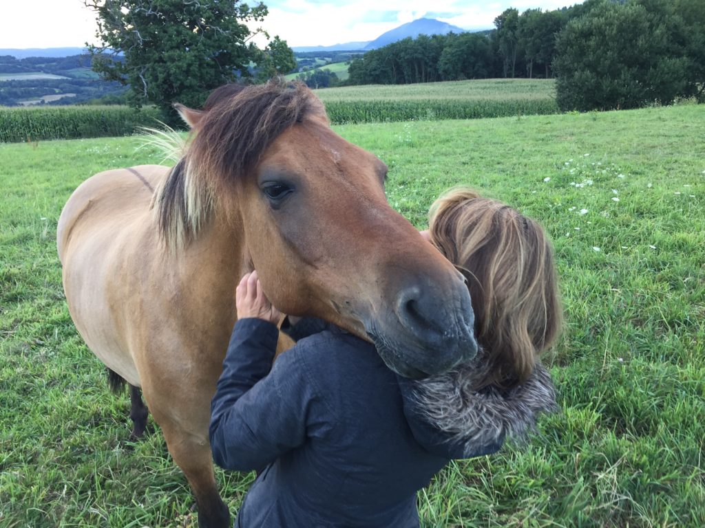 Moka devient sacrément proche au pré : face à son comportement si tendre, je n’arrive plus à le quitter…je peux ainsi rester 1h avec lui à le câliner. Partir est toujours très difficile dans ces cas là.
